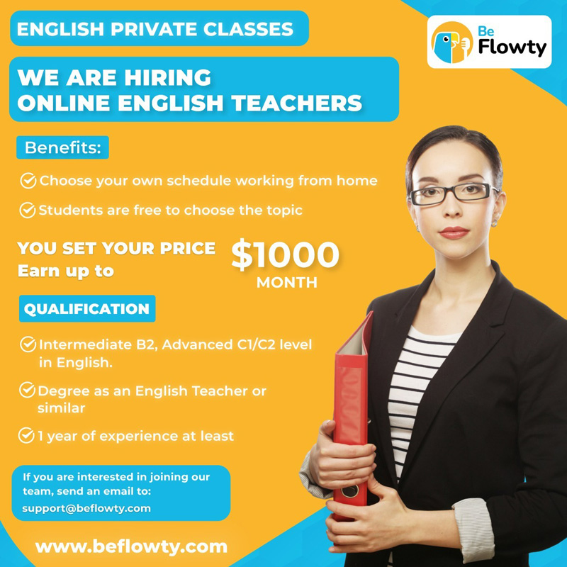 Beflowty is a platform that allow you to work online teaching English to students from different countries and earn money monthly through paypal o payoneer.